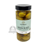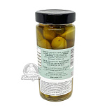 GREEN OLIVES Оливки зеленые фаршированные зелёным огурцом в рассоле. Вес 390 гр , без рассола 220 гр.