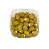 Отборные сочные плоды оливковых деревьев, фаршированные мягким сыром – яркая закуска, знакомящая с характерным колоритом греческой кухни. Островатый, выраженно солёный вкус традиционного греческого сыра «Фета» изящно дополняет самобытную индивидуальность гастрономических характеристик зелёных оливок, создавая контраст текстуры и вкусов.